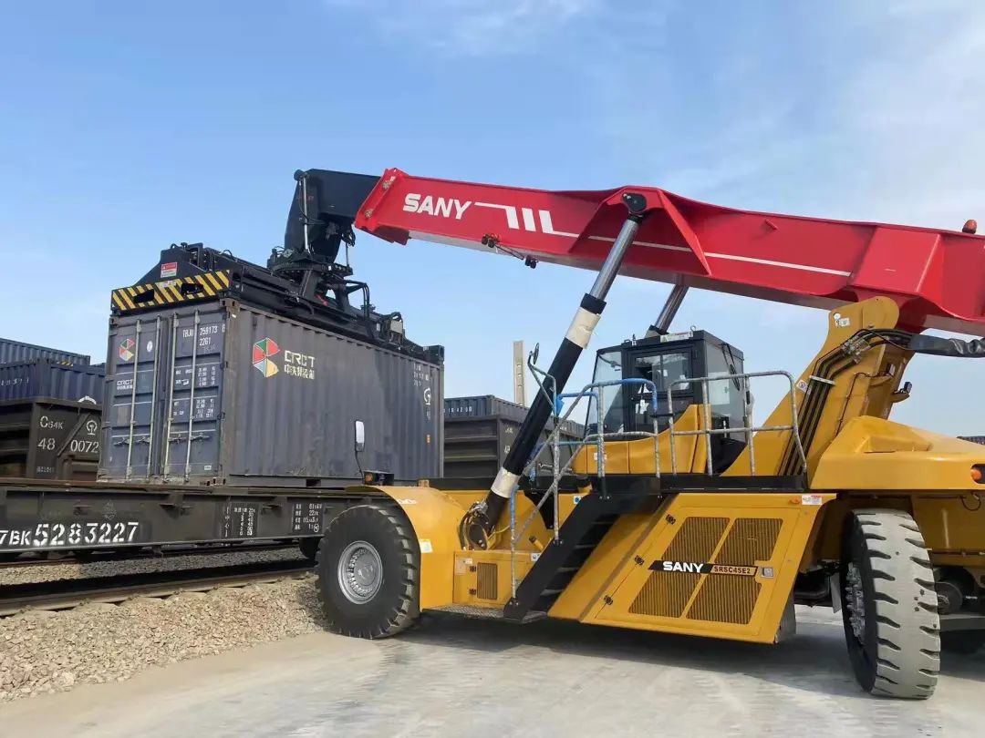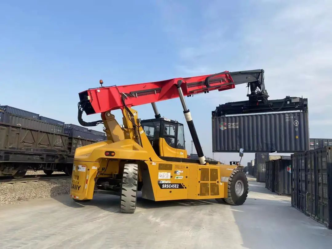 三一第二代混电正面吊SRSC45E2交付河北邢台客户投入使用,这是自去年7月和今年1月后,又一河北地区客户购入三一电动正面吊。