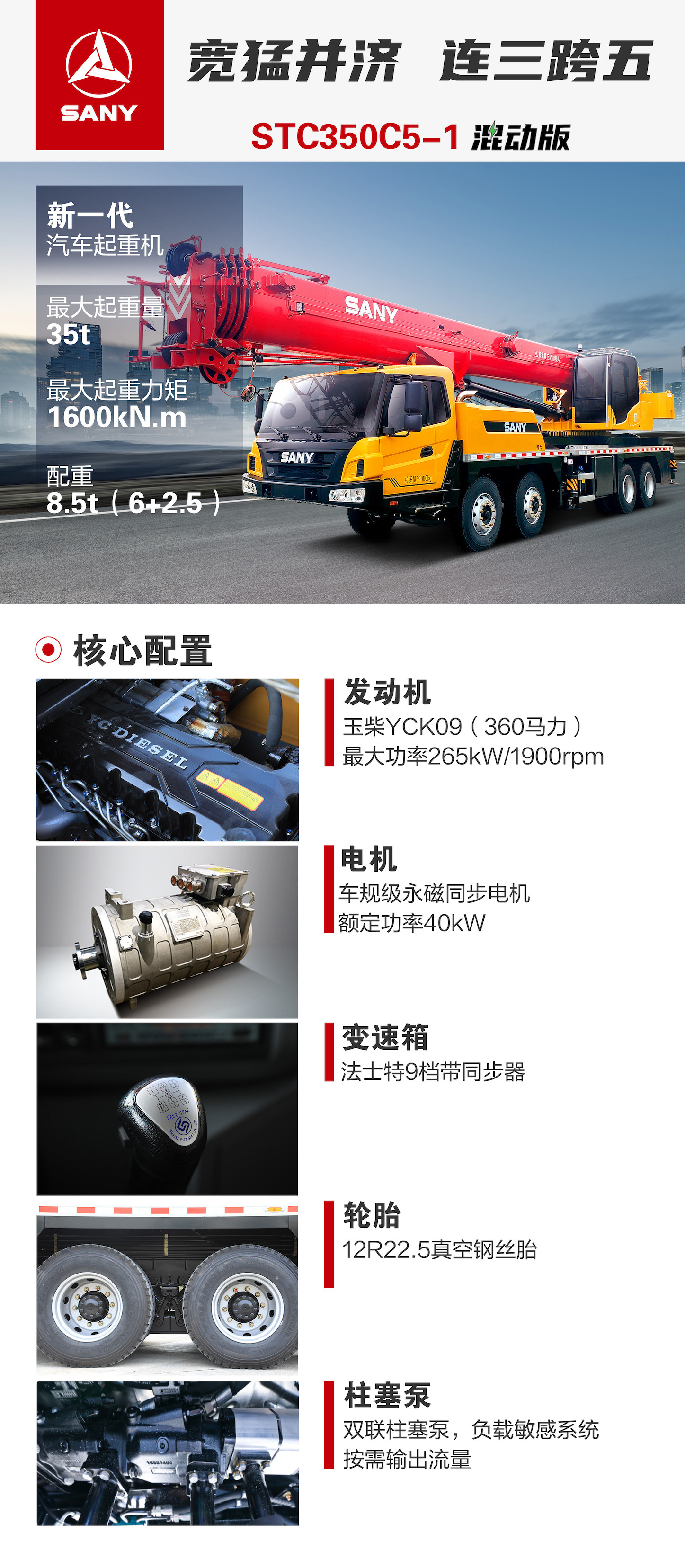 面对不错的市场反响和使用评价,三一再次出牌,迎来又一款35吨“混动”机型——STC350C5-1。