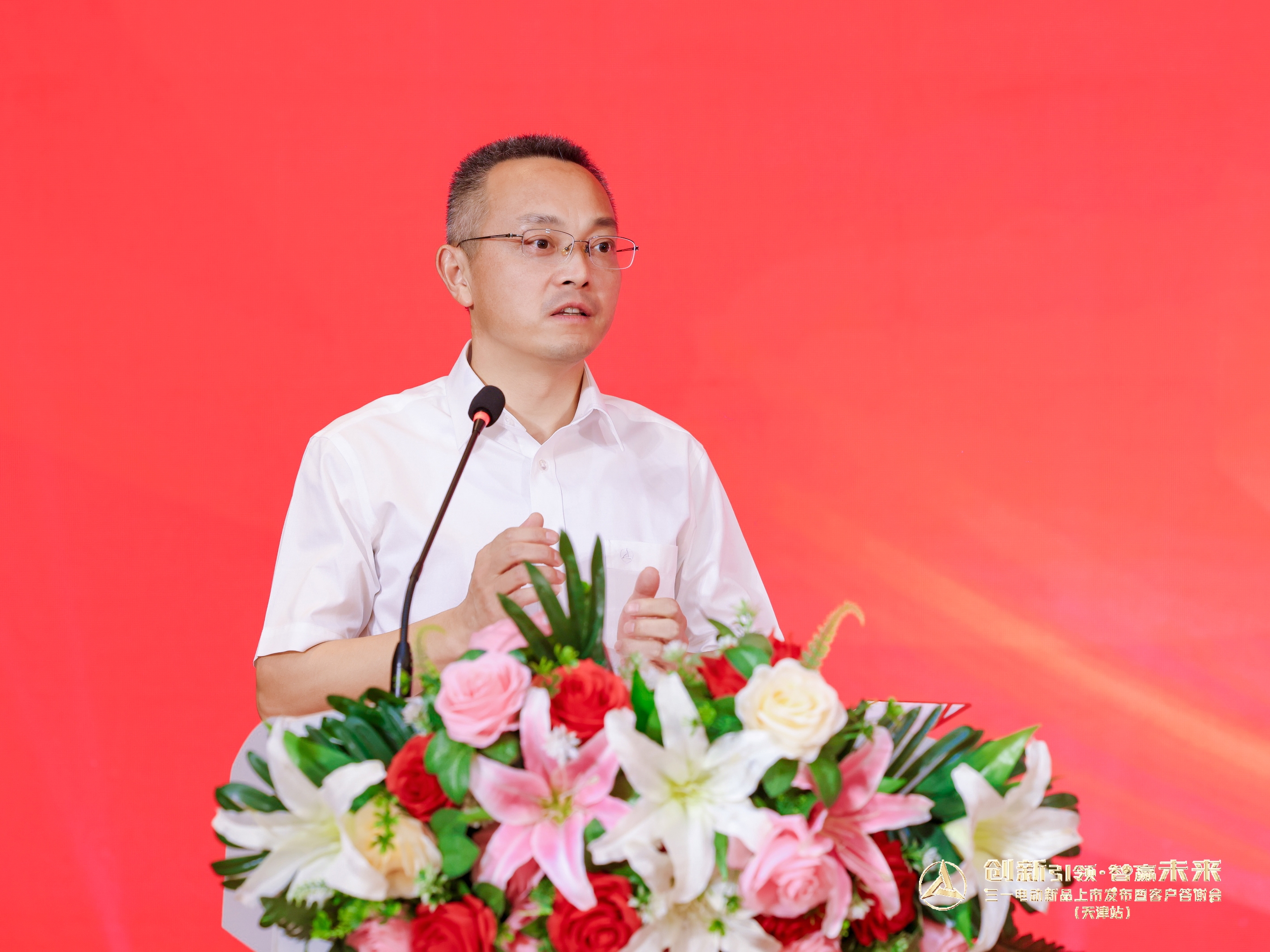 内场环节,天津市混凝土行业协会会长张锋先生表示:“三一在新能源赛道率先发力,取得多项令人瞩目的杰出成就,并以领跑者姿态市场领先,值得信赖。”并向行业发出倡议:“要突破传统思维,积极谋变创新。在国家‘双碳’战略指引下,勇于投入、敢为人先,通过节能降碳、提质降本,全面提升企业技术创新力和市场竞争力。”