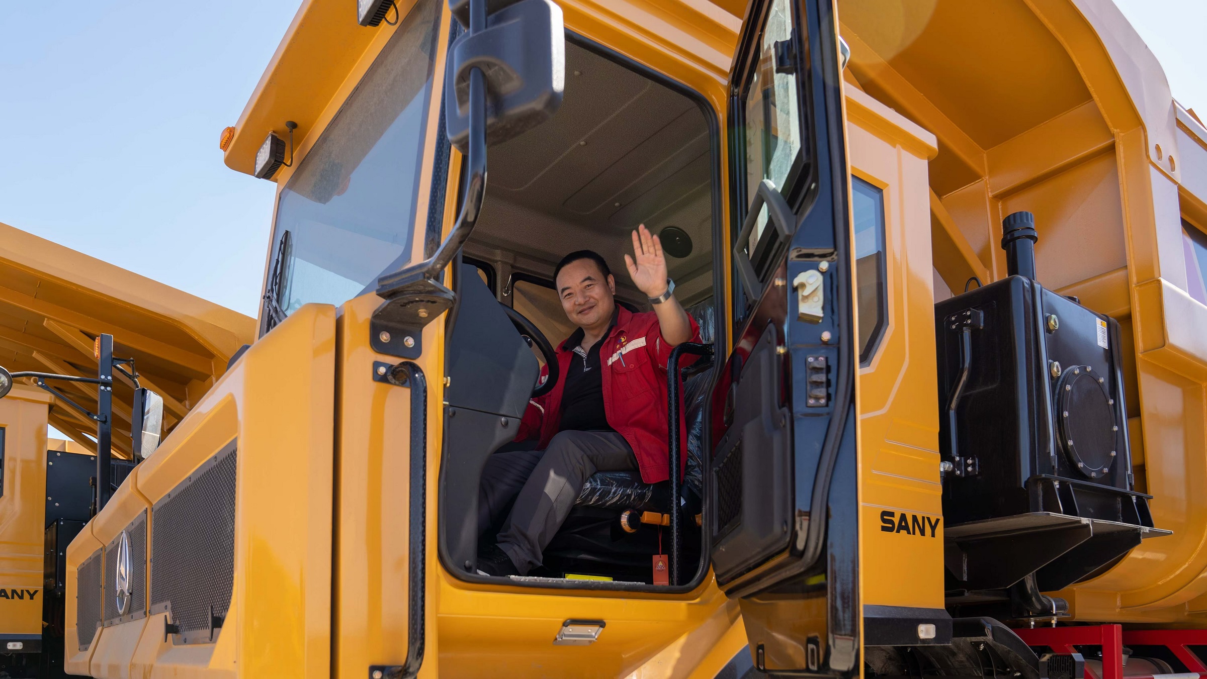本次批量交付的20台混动宽体车SKT130HD,是三一重装最新研发的全新一代宽体自卸车,其采用混联式混动技术——发电机+双电机的动力模式,综合节油率可达20%;全新设计的U型货箱——额定载重90吨、平装容积55方,出勤率达95%。今年2月首车交付以来在白石湖露天矿表现出色,获得客户的一致好评。