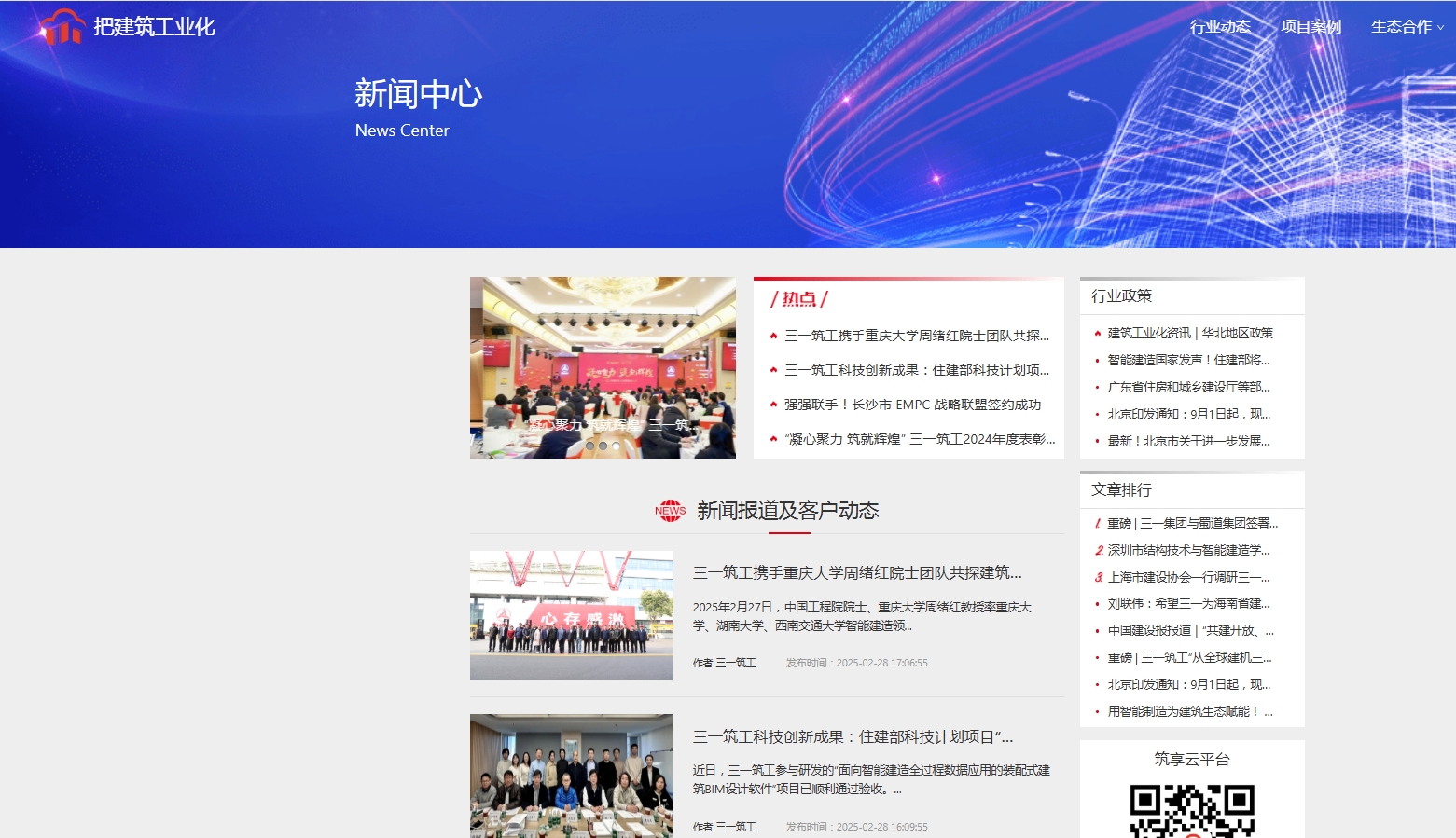 •浏览筑工与三一集团等知名企业的合作详情,了解智能建造生态体系。
