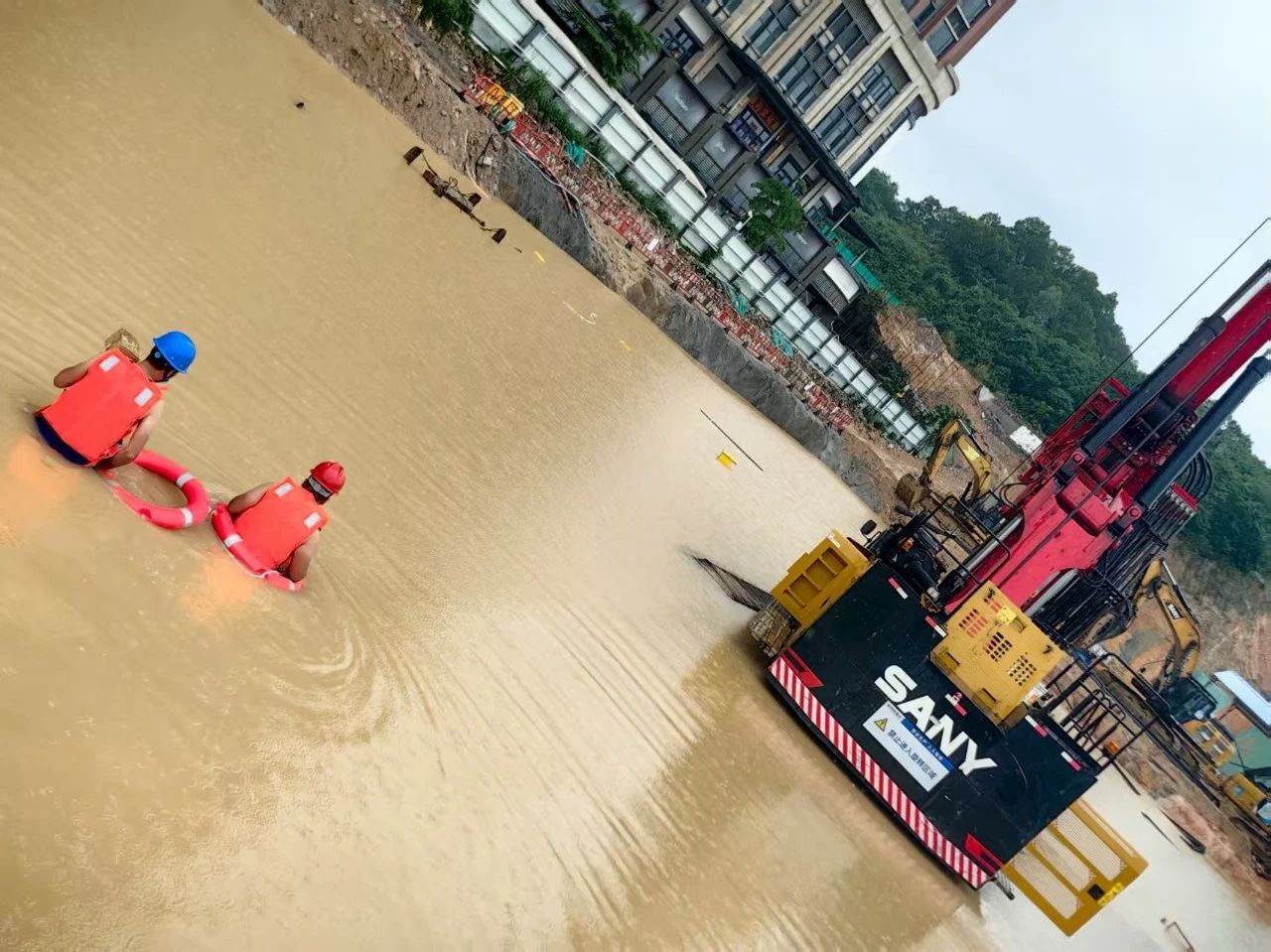 了解情况后,服务工程师刘伟和梁二虎立刻驱车出发,在积水严重的道路上艰难跋涉50公里,终于抵达工地。眼前的景象令人揪心:基坑内水位已高达1.5米以上,设备大半浸在水中,情况危急。