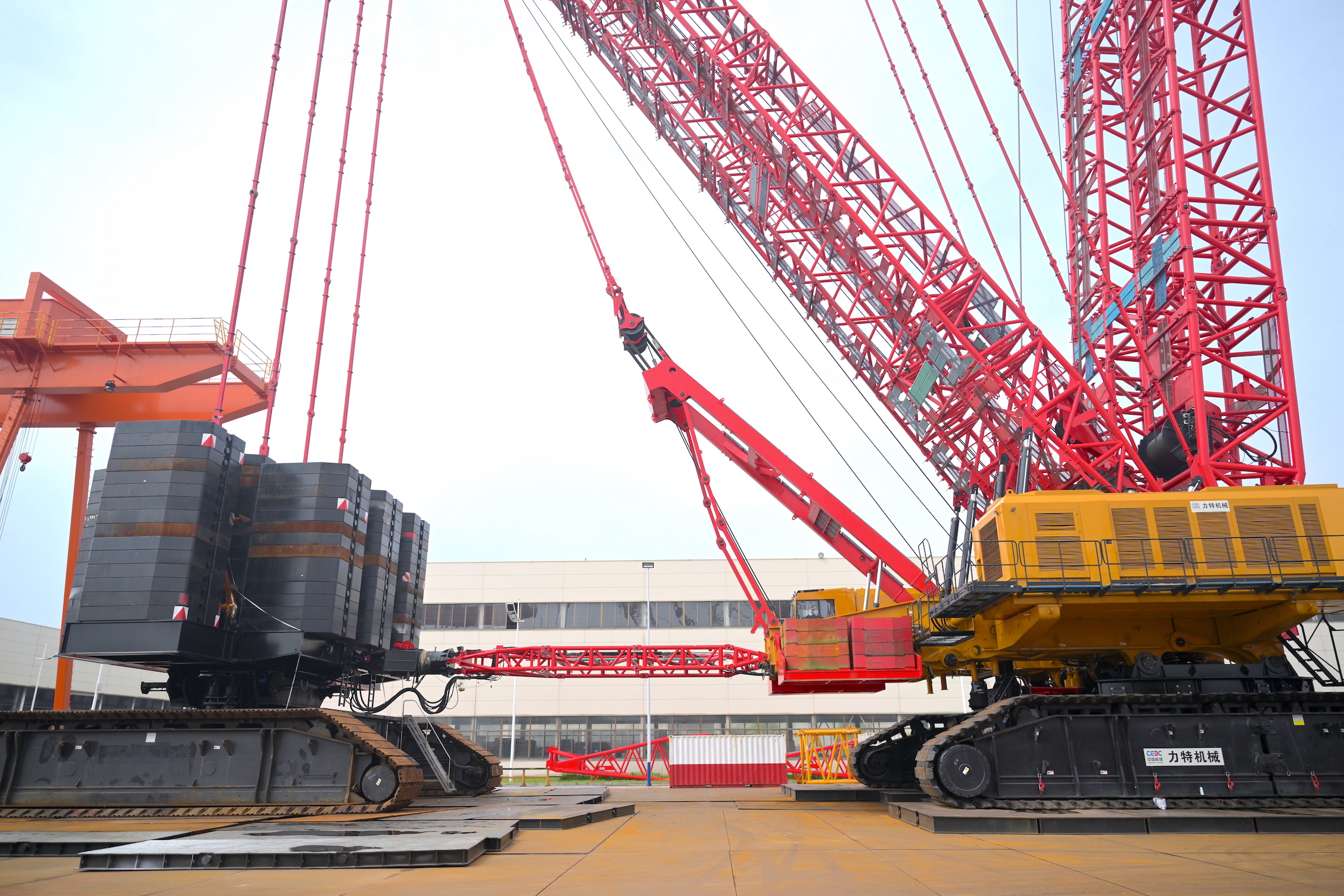 SCC52000TM由一台2000吨和一台1600吨的履带起重机改装组合而成,是国内首台投产及应用的“二合一”履带起重机。最大起重量3000吨,主要满足石化罐体、核电穹顶等大型化吊装的需求。