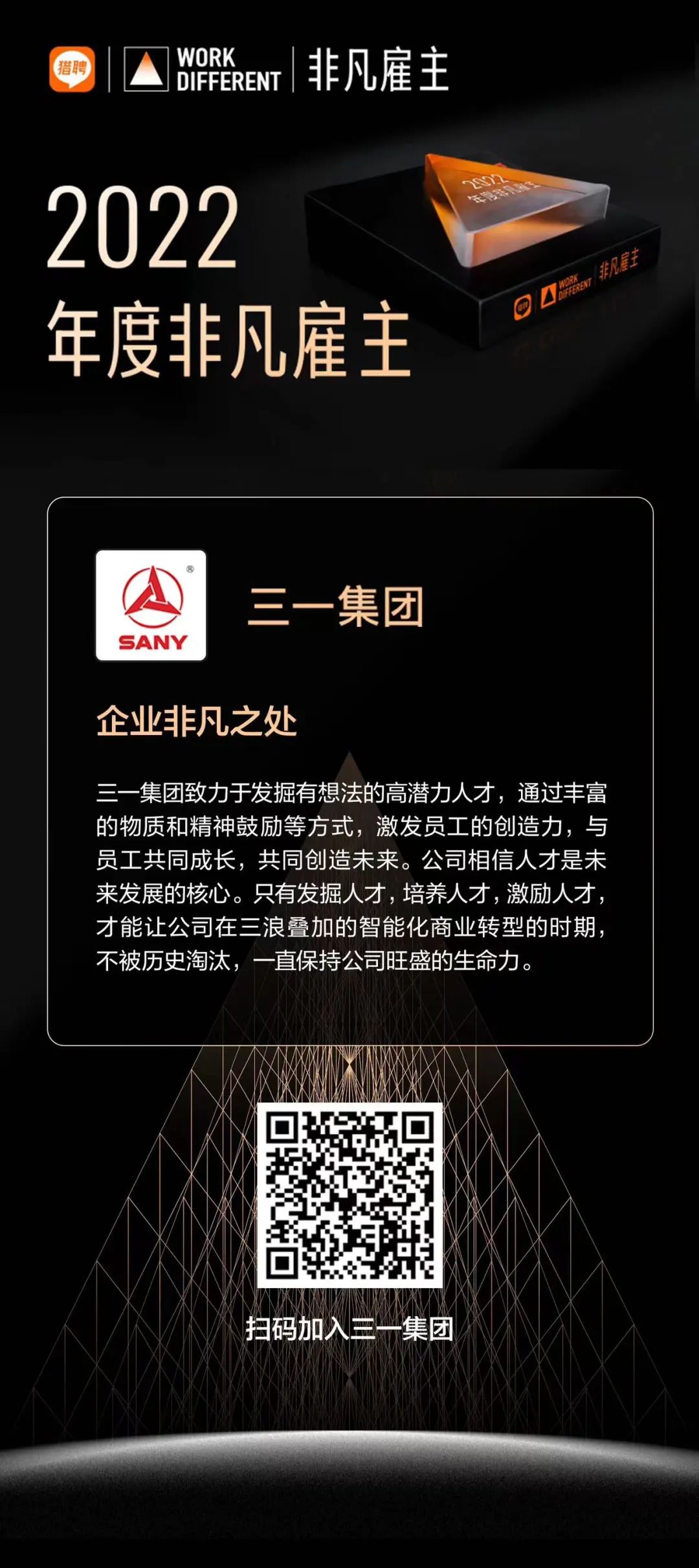 组委会在颁奖词中写道:“三一集团多样化激励方案绽放员工潜力,尊重和兑现员工价值,与员工共创美好未来。”