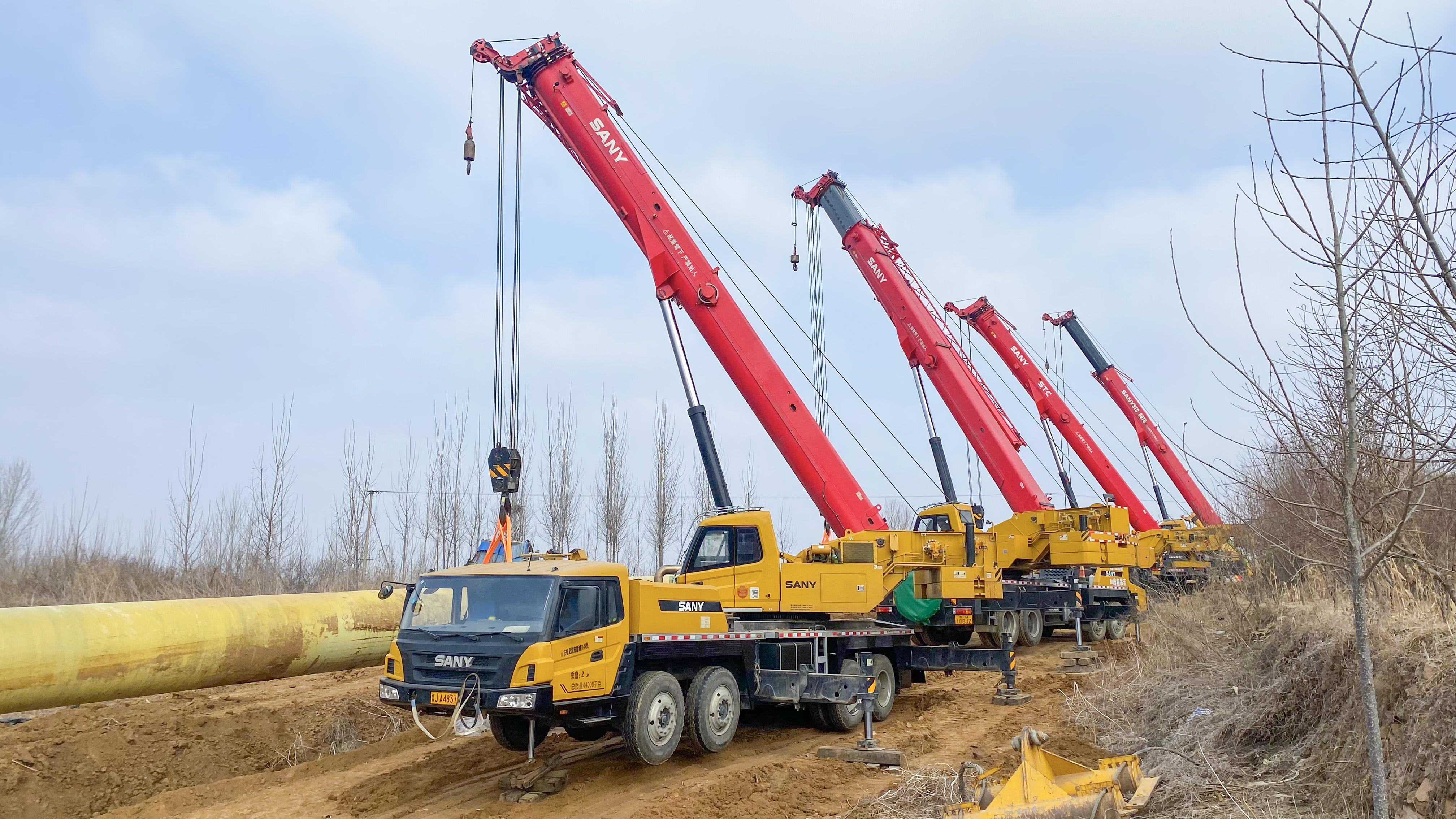 “年后,我们项目部就开始在当地找不同品牌、不同型号的起重机设备来进行吊载实验,要求回转性能十分稳定,经过比较,我们最后选择了四台80-100吨的三一起重机参与管线回拖施工。”辽河油建项目部董经理说道。