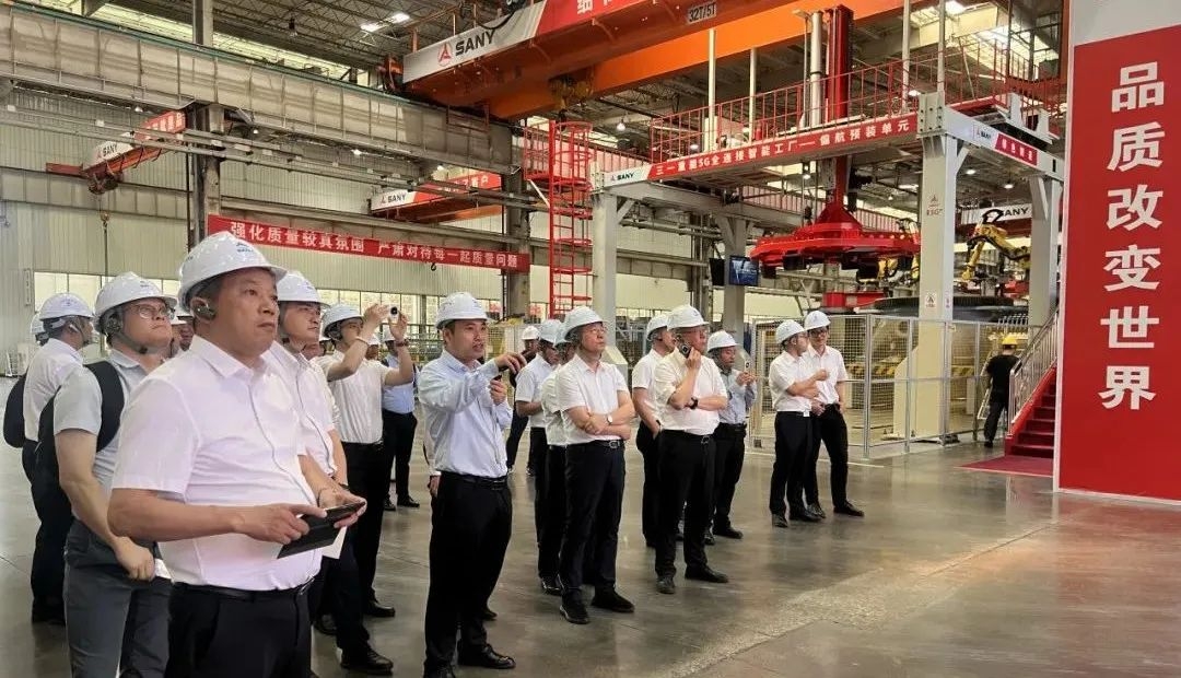 彭旭陪同来访嘉宾一同参观了主机智能制造产线、自动化电机产线、三一桩机“灯塔工厂”,以及风电综合测试中心,并着重介绍了三一重能数字化转型与智能制造的发展历程、创新成果及未来规划。