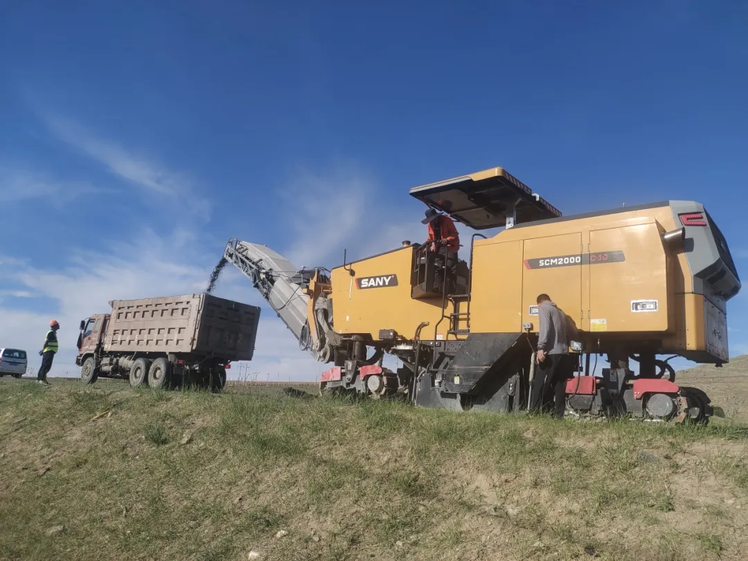 在本次X082旅游线养护工程中,三一SCM2000C-10铣刨机对路面进行4公分沥青铣刨养护修补。