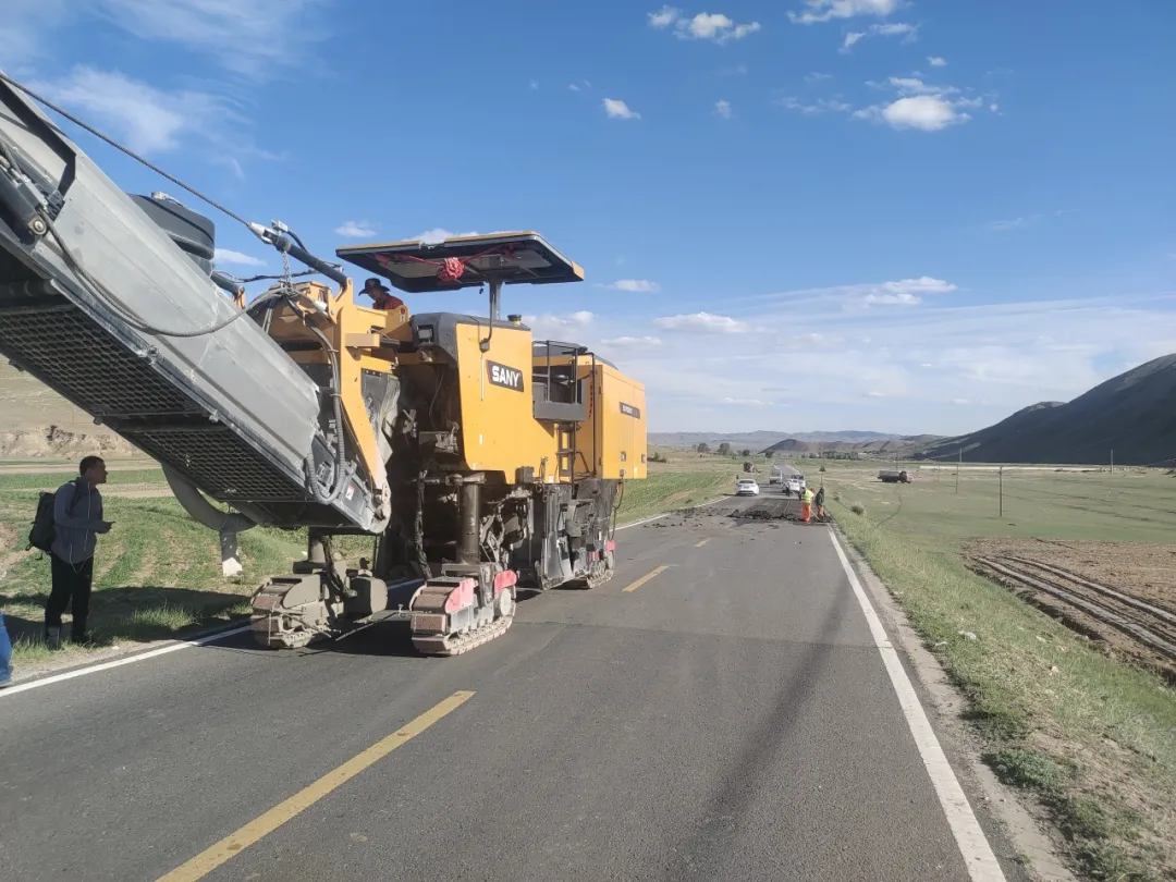 在X082旅游线的两旁,是一望无际广阔无边的内蒙草原。为了保障X082的通行安全和道路质量,为游客提供更为便捷和舒适的旅游体验,X082旅游线养护工程正在如火如荼的施工中。在一片绿意中,三一SCM2000C-10铣刨机轰鸣前行,将原本老旧、病害的路面一“铣”而光。