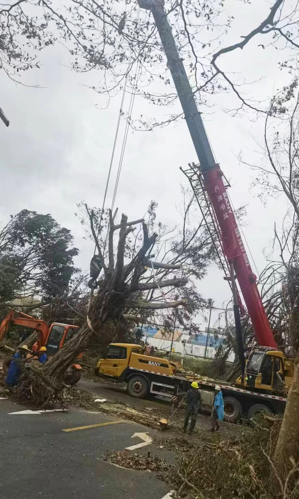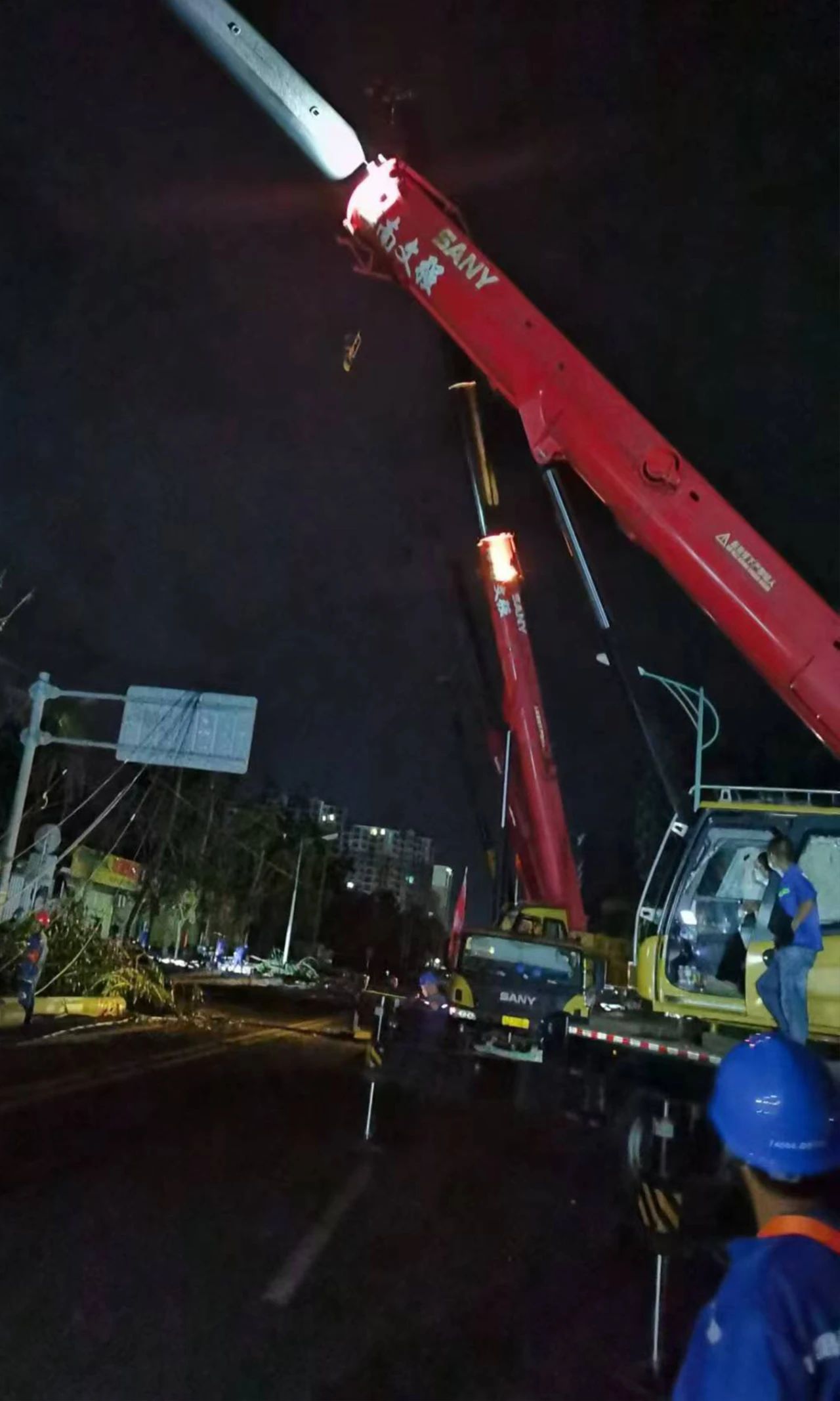 经海南各级政府的积极抢修及周边省份的支援,目前海南的交通、电力、通信正在快速恢复。在应急管理部门指导下,三一调度起重机、挖掘机、装载机、重卡、自卸车等设备,投入到抢修和重建工作中,行动得到了客户的积极响应,许多起重机吊装租赁公司自发参与到救灾行动中。