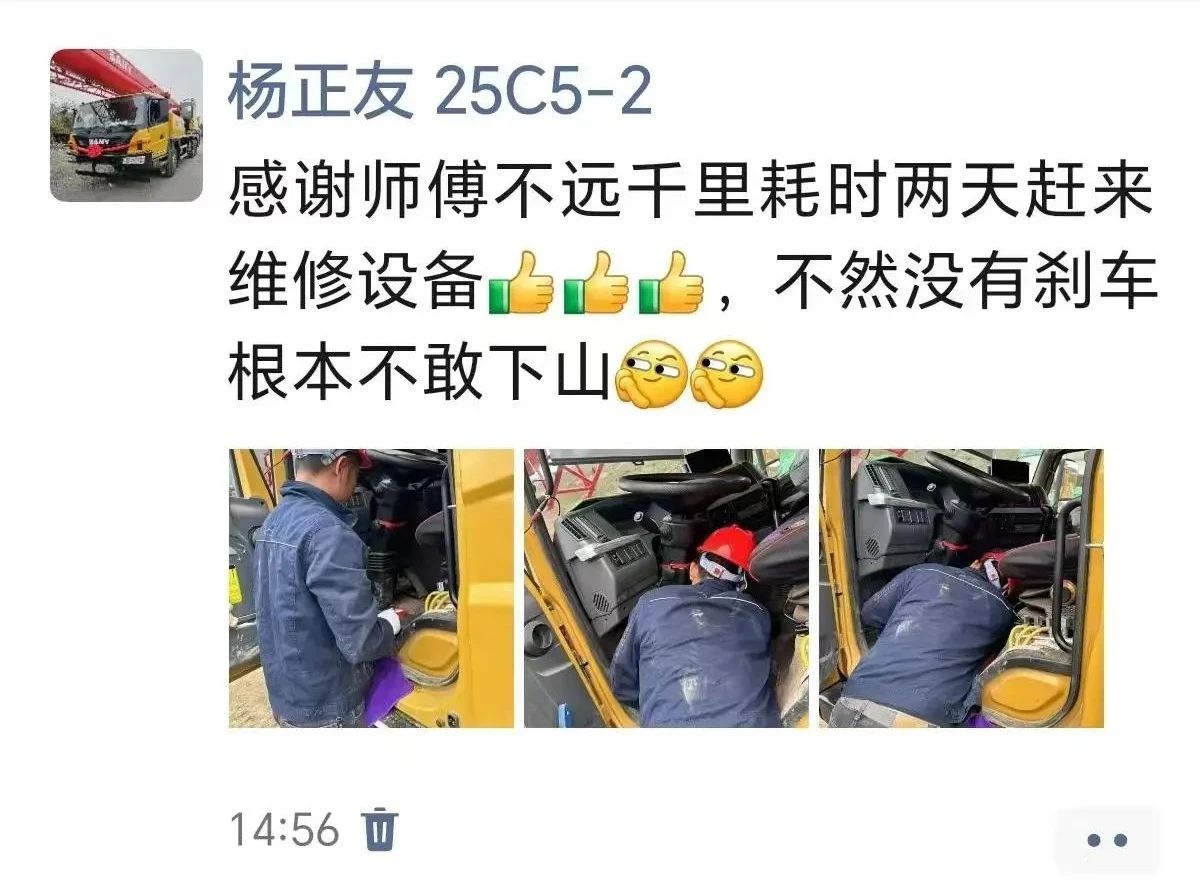 三一服务不分时间、不分地点,路行万里始终如一,欢迎广大用户对三一服务工作监督批评,提出建设意见,帮助三一和行业服务的不断进步,让客户享受到更好、更专业的优质服务。