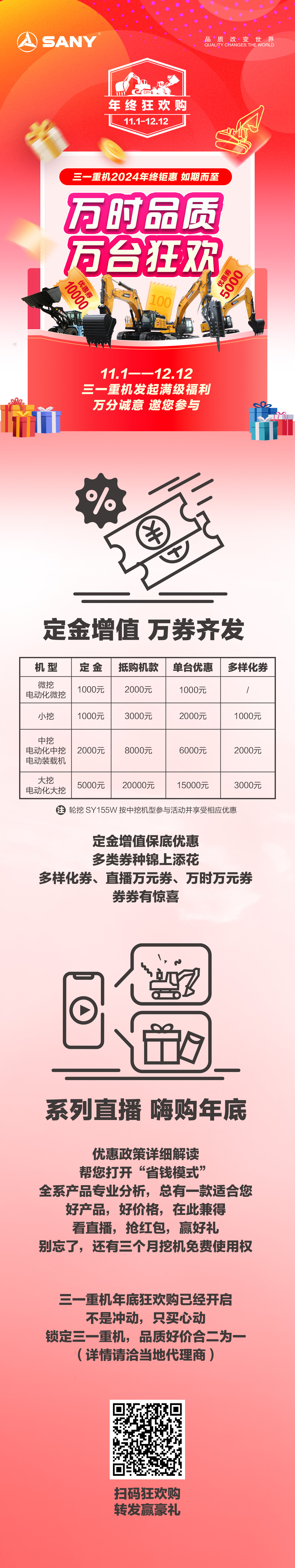 万时品质,万台狂欢,三一重机年终钜惠,满级福利震撼来袭!