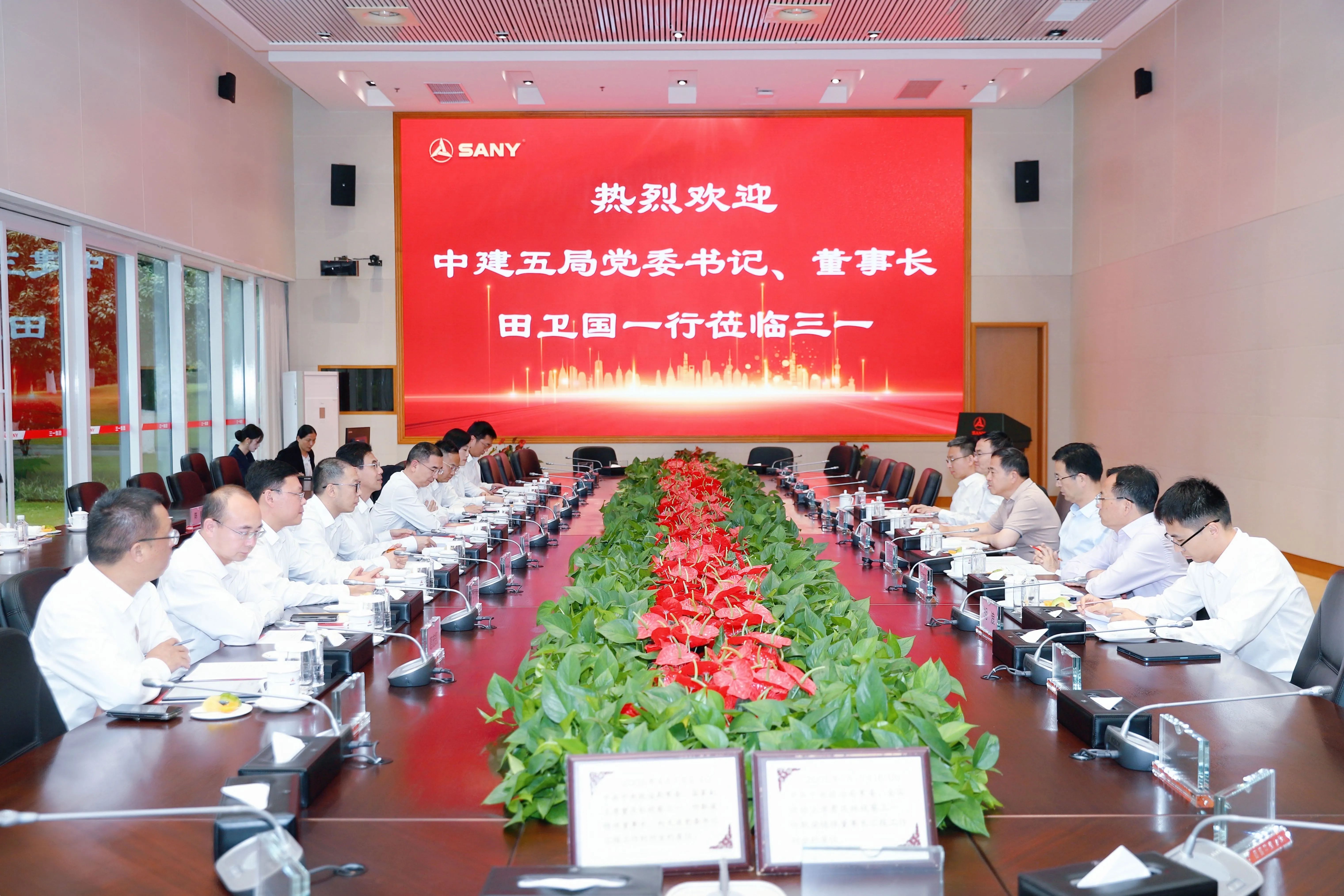 5月8日,中建五局党委书记、董事长田卫国一行到访三一集团长沙产业园,与三一集团党委书记、董事长,三一重工董事长向文波展开会谈。