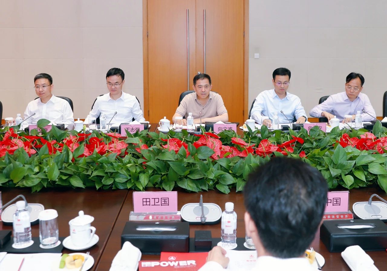 向文波对田卫国一行的到访表示热烈欢迎,并介绍了三一集团的经营现状与“全球化、数智化、低碳化”转型实践。向文波表示,身处中华民族伟大复兴的中国梦和第四次工业革命叠加第三次能源革命的超级技术窗口,三一集团正全力推进第三次创业新征程,致力于成为智能制造、国际化与高质量发展的典范。