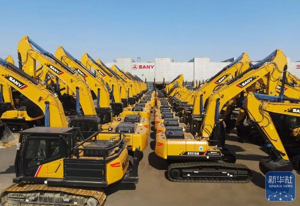 新华社报道:位于上海自贸试验区临港新片区的三一重机生产基地,平均每20分钟就有一台中型挖掘机下线,这一高效生产场景令人瞩目。