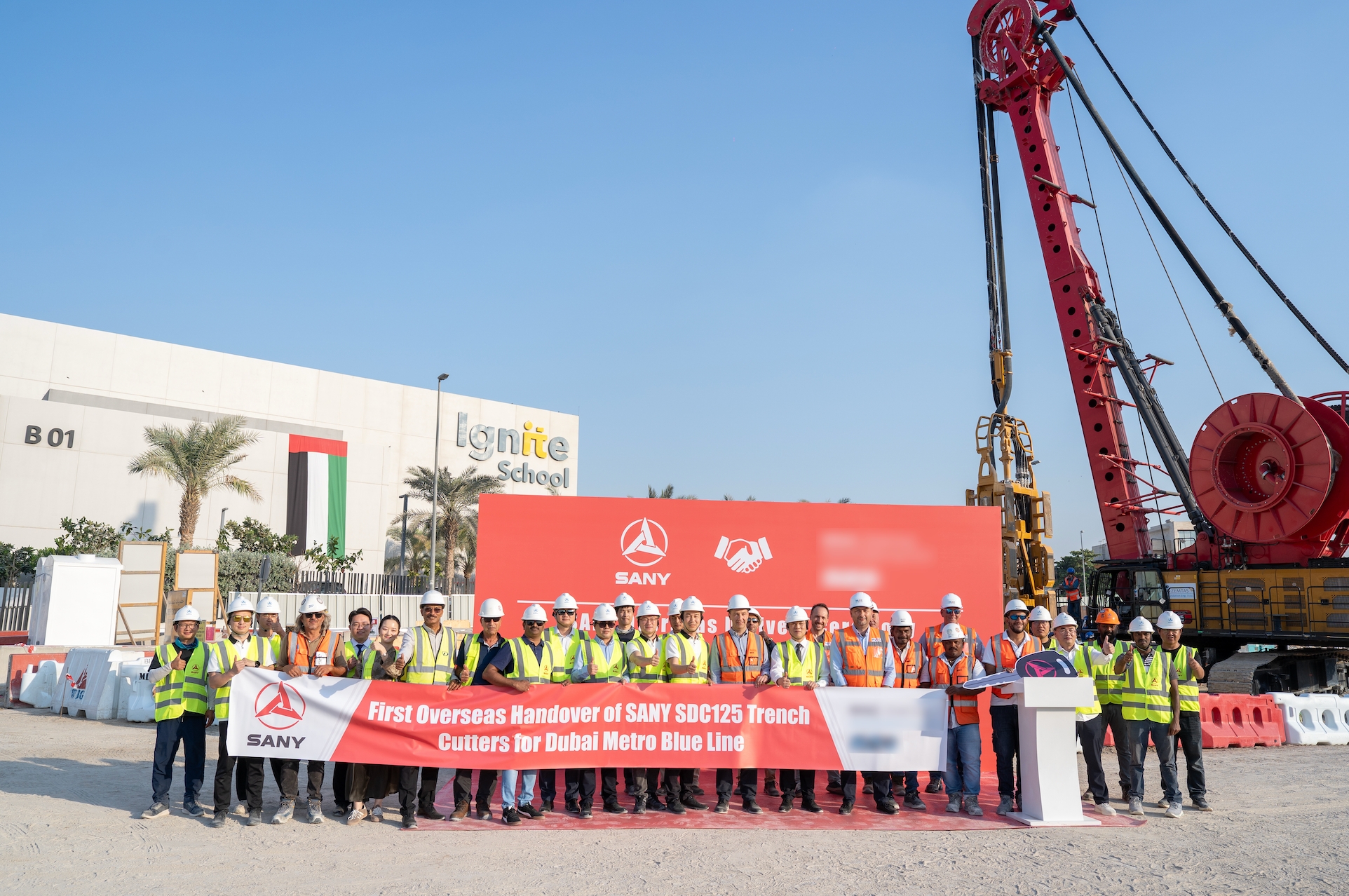 近日,三一重工在迪拜地铁蓝线项目现场举行全球首批SDC125双轮铣交付仪式。三一中东北非大区董事长谈波与项目承建方代表共同见证了这一重要时刻。此前在迪拜其他项目中表现优异的SDC120机型,为此次全新升级的SDC125双轮铣槽机的交付奠定了坚实基础。此次交付的两台SDC125双轮铣槽机将立即投入地铁站点建设,为项目高效推进提供坚实保障。