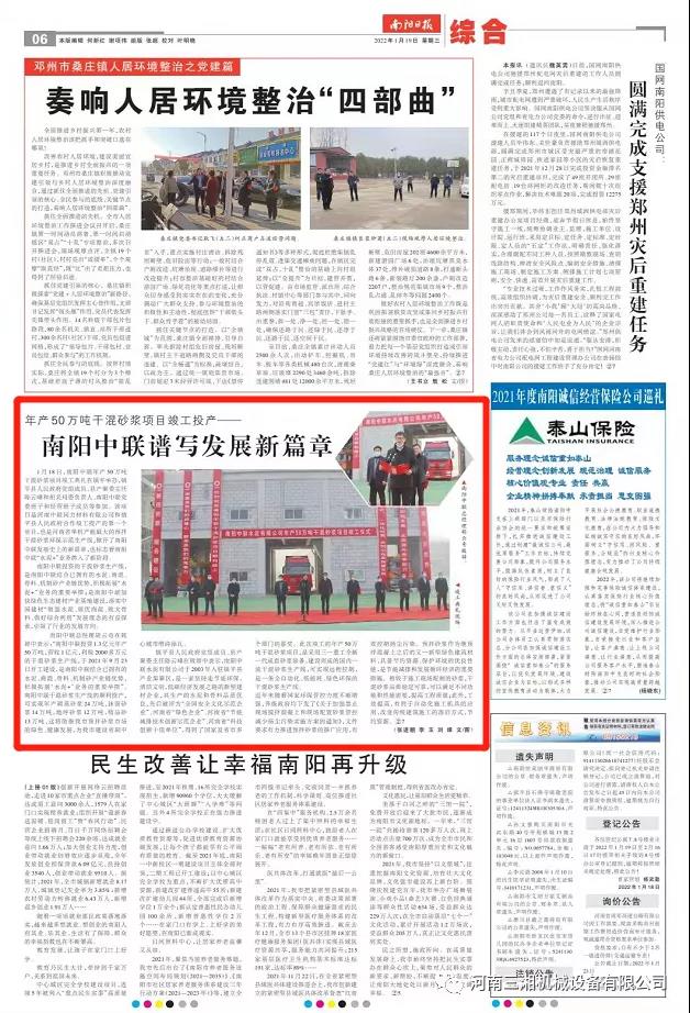 南阳中联投资的干混砂浆项目是继2021年7月14日河南中联同力材料有限公司与三一重工达成战略合作之后的首次干混砂浆项目成果。