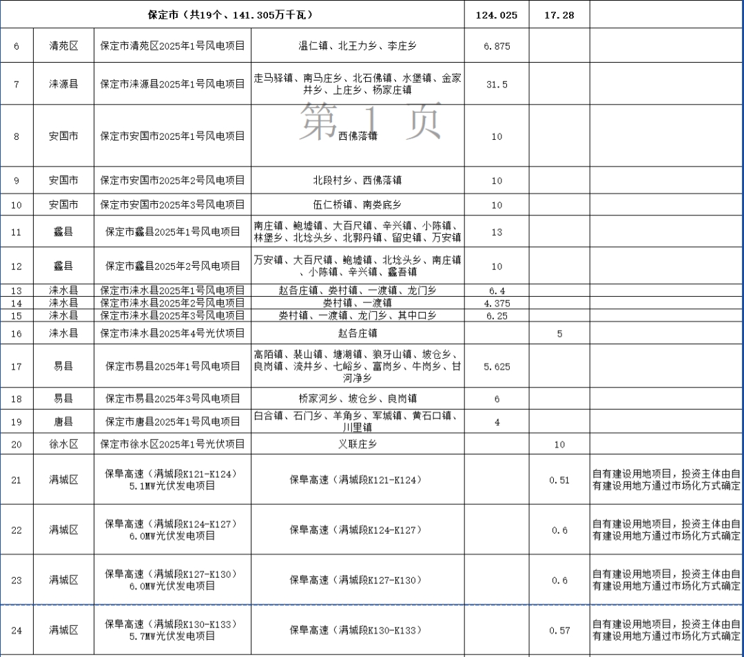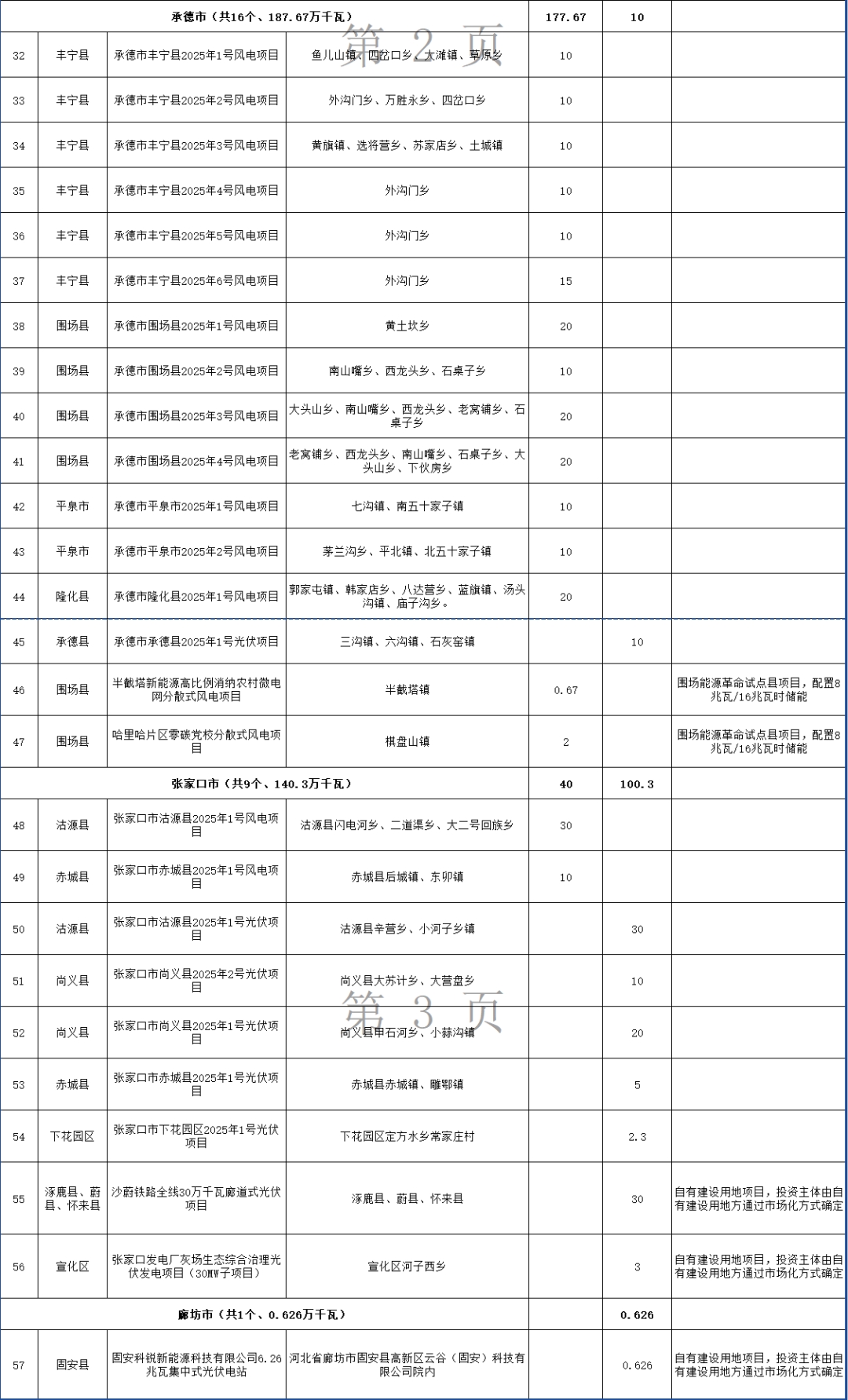 北极星风力发电网获悉,2025年12月31日,河北省发改委发布《关于发布2025年河北省风电光伏项目竞配清单的通知》。《通知》中指出,纳入2025年河北省风电光伏项目竞配清单的符合条件的项目共57个,总装机容量696.492万千瓦。其中,风电项目40个,规模共计556.695万千瓦;光伏项目17个,规模共计139.797万千瓦。详情见下: