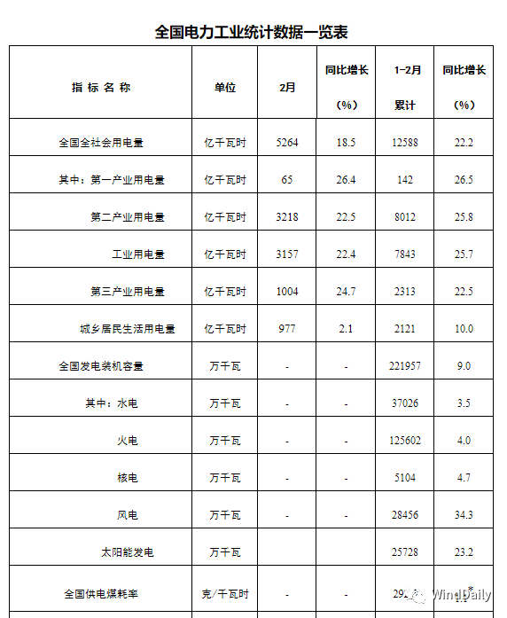 附:国家能源局发布1-2月数据