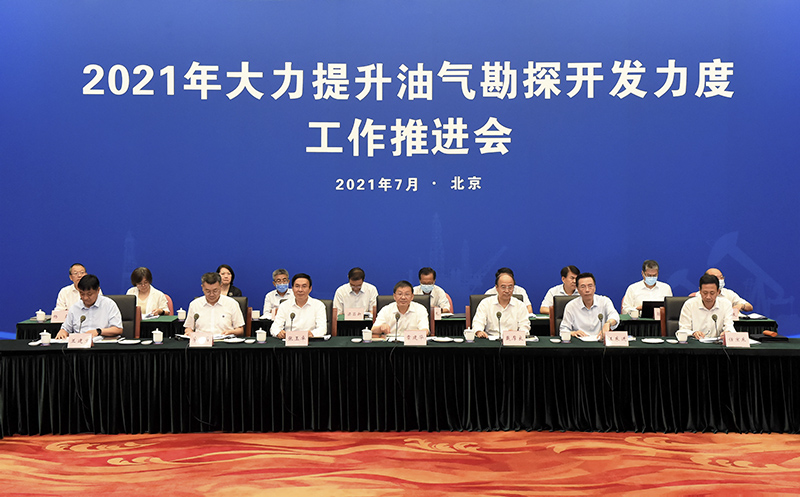 7月15日,国家能源局在北京组织召开2021年大力提升油气勘探开发力度工作推进会,深入贯彻落实习近平总书记关于油气勘探开发系列重要指示批示精神,总结前期工作经验,分析当前面临形势,研究部署下步工作,对大力提升油气勘探开发力度进行再学习再动员,推动油气产业高质量发展再上新台阶。国家能源局党组书记、局长章建华出席会议并讲话,局党组成员、副局长任京东主持会议。中国石油董事长、党组书记戴厚良,中国石化董事长、党组书记张玉卓,中国海油董事长、党组书记汪东进,中国海油总经理、党组副书记李勇,陕西延长石油党委书记、董事长兰建文出席会议,并介绍了工作进展。