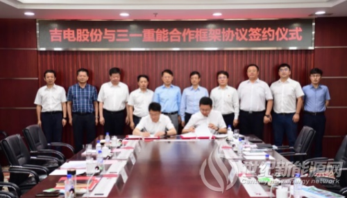 7月14日,吉电股份与三一重能股份有限公司在公司本部签订合作框架协议。吉电股份党委书记、董事长才延福,