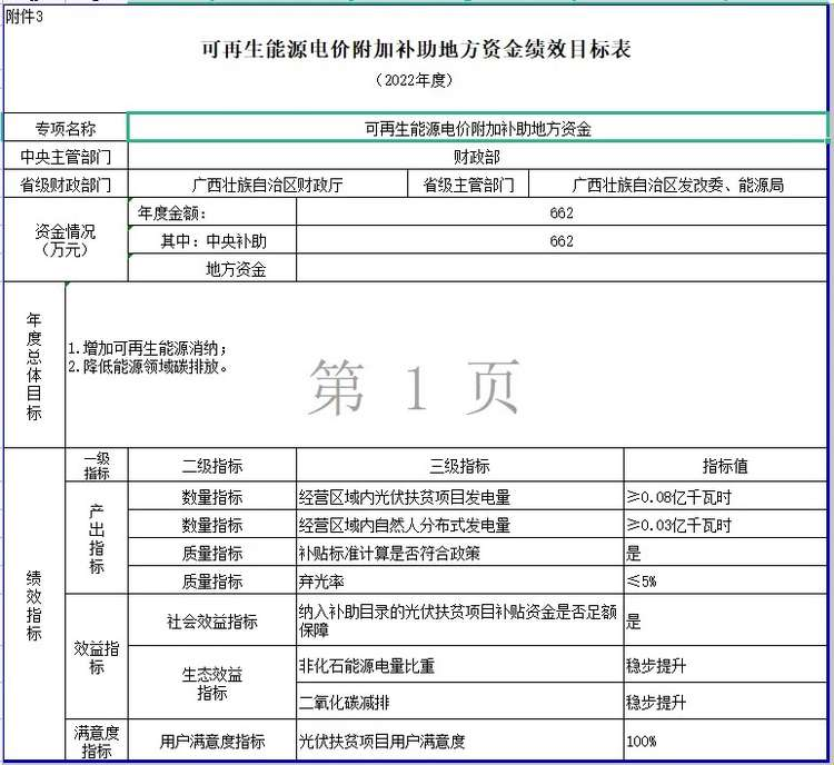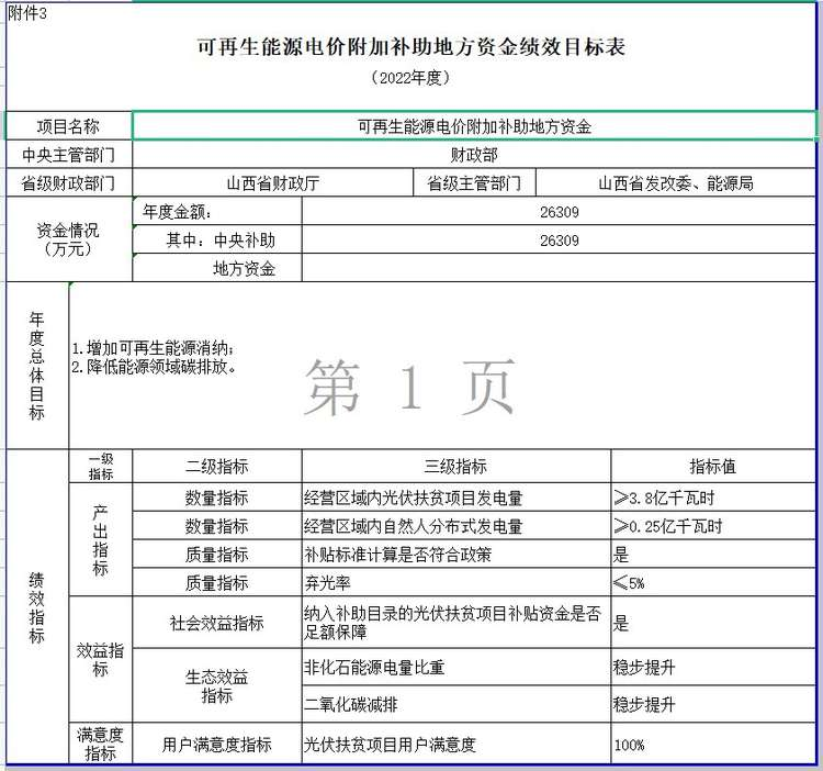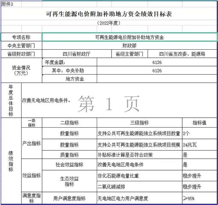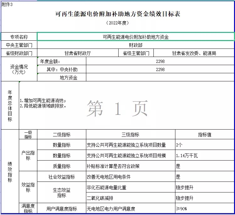 四、为保障资金安全,提高资金使用效率,电网企业应按年度对补贴资金申请使用等情况进行全面核查,必要时可聘请独立第三方。为深入贯彻落实《中共中央 国务院关于全面实施预算绩效管理的意见》,切实提高财政资金使用效益,请你单位在组织预算执行中对照绩效目标(附件3)做好绩效监控,确保年度绩效目标如期实现。同时,你单位应按规定及时上报绩效自评结果,绩效自评结果将作为分配预算资金的重要依据。