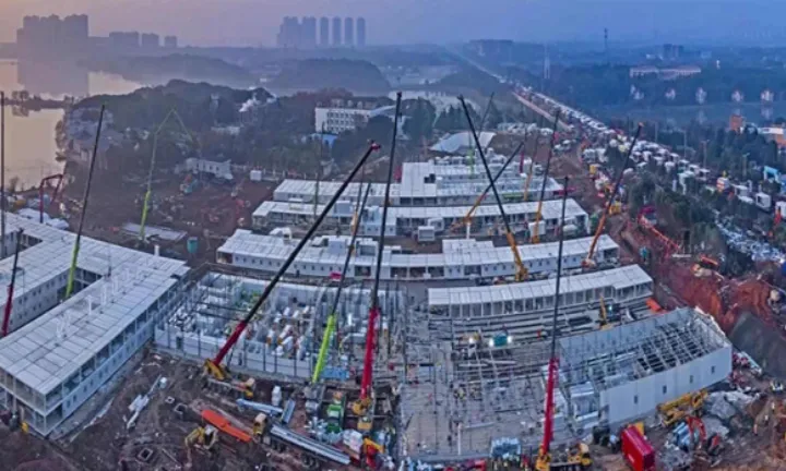 2020新年伊始,疫情蔓延,1月24日三一接到建设任务后,41台三一起重机、8台泵车、35台搅拌车、22台挖机,共计106台设备24小时昼夜不停,克服各种不利影响,在数个工作日内完成重要环节的施工。