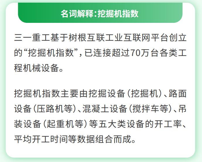 这家公司在三一卖出去的各种工程机械上安装了传感器,进行数据的采集分析。到今天,“挖掘机指数”是由70多万台设备的数据汇总而成。