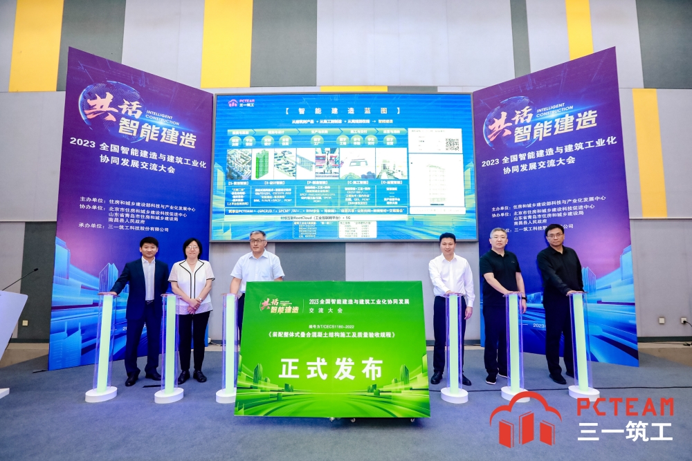作为会议承办方,三一筑工科技股份有限公司(以下简称“三一筑工”)相关负责人会议期间发表了《智能建造的思考与实践》主题演讲,并举行了《三一集团智能建造蓝图》和中国工程建设标准化协会标准《装配整体式叠合混凝土结构施工及质量验收规程》发布仪式,受到了社会各界的高度关注。