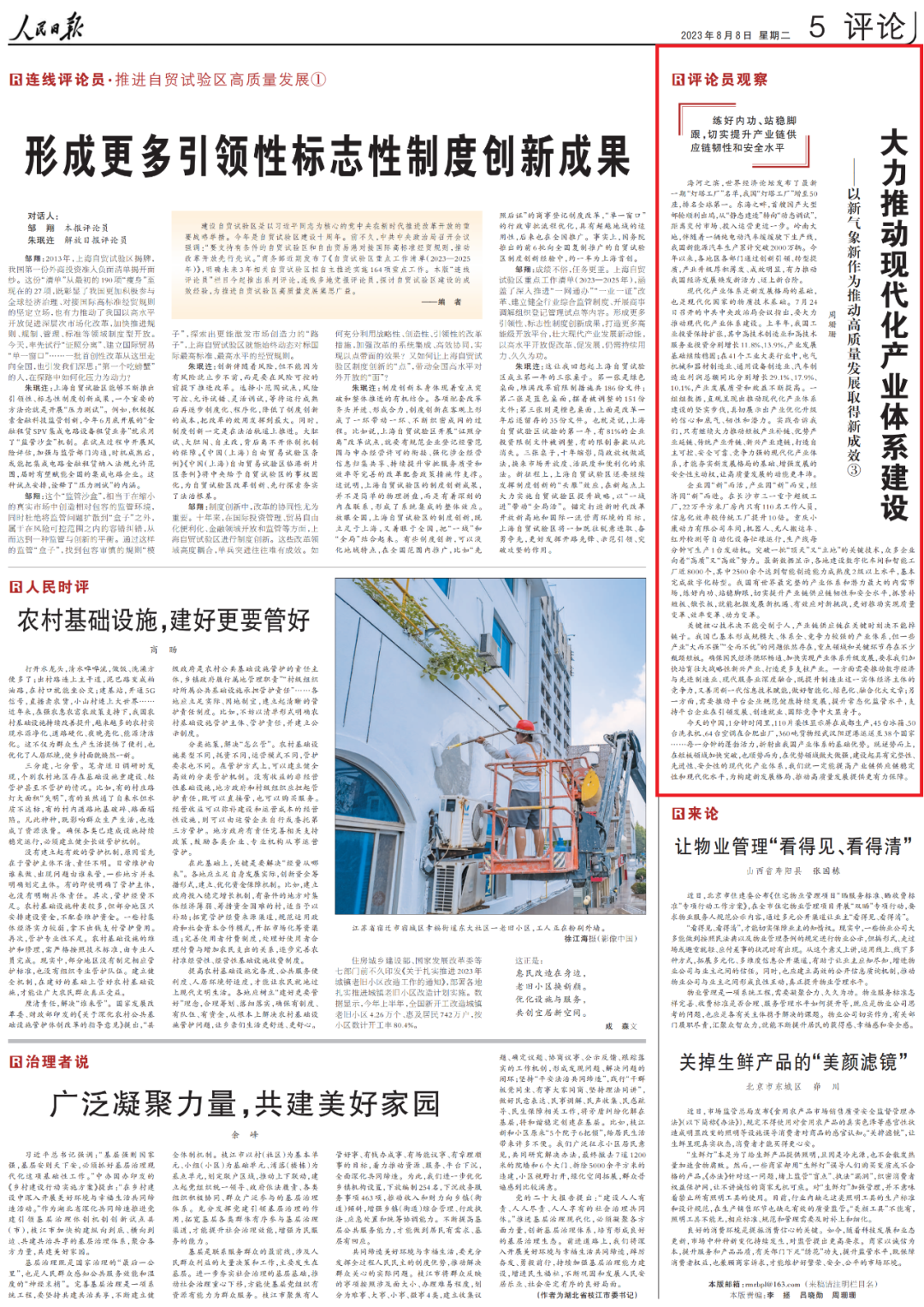 8月3日-8日,《人民日报》连发四篇报道,从重大工程建设、新型基建投资、民营经济发展动力、现代化产业体系等方面,关注三一高质量发展。