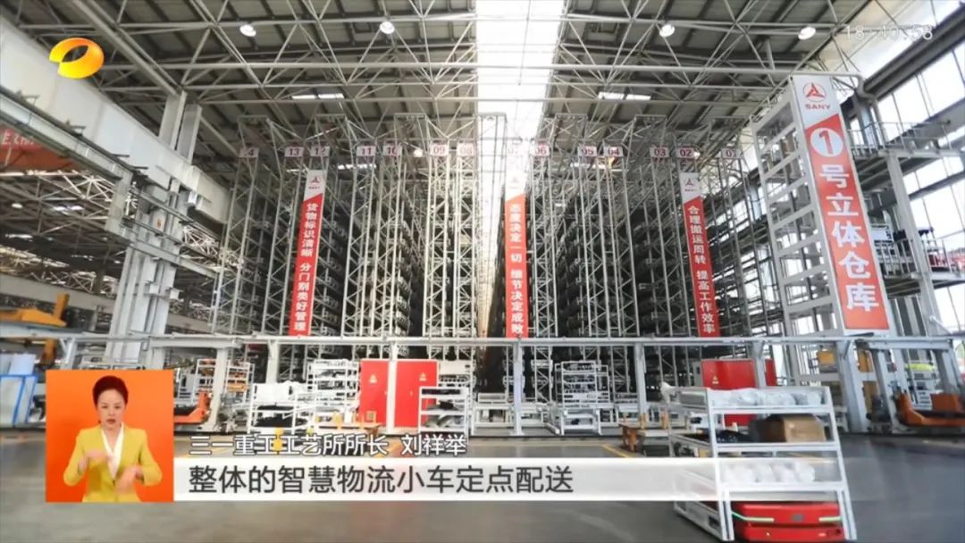 三一重工工艺所所长刘祥举介绍,“我们在去年底实现了整体智慧物流小车定点配送,今年我们重点推的就是物料在线,从系统下发到物料转移,到配送到现场,基本上半个小时之内就可以。”