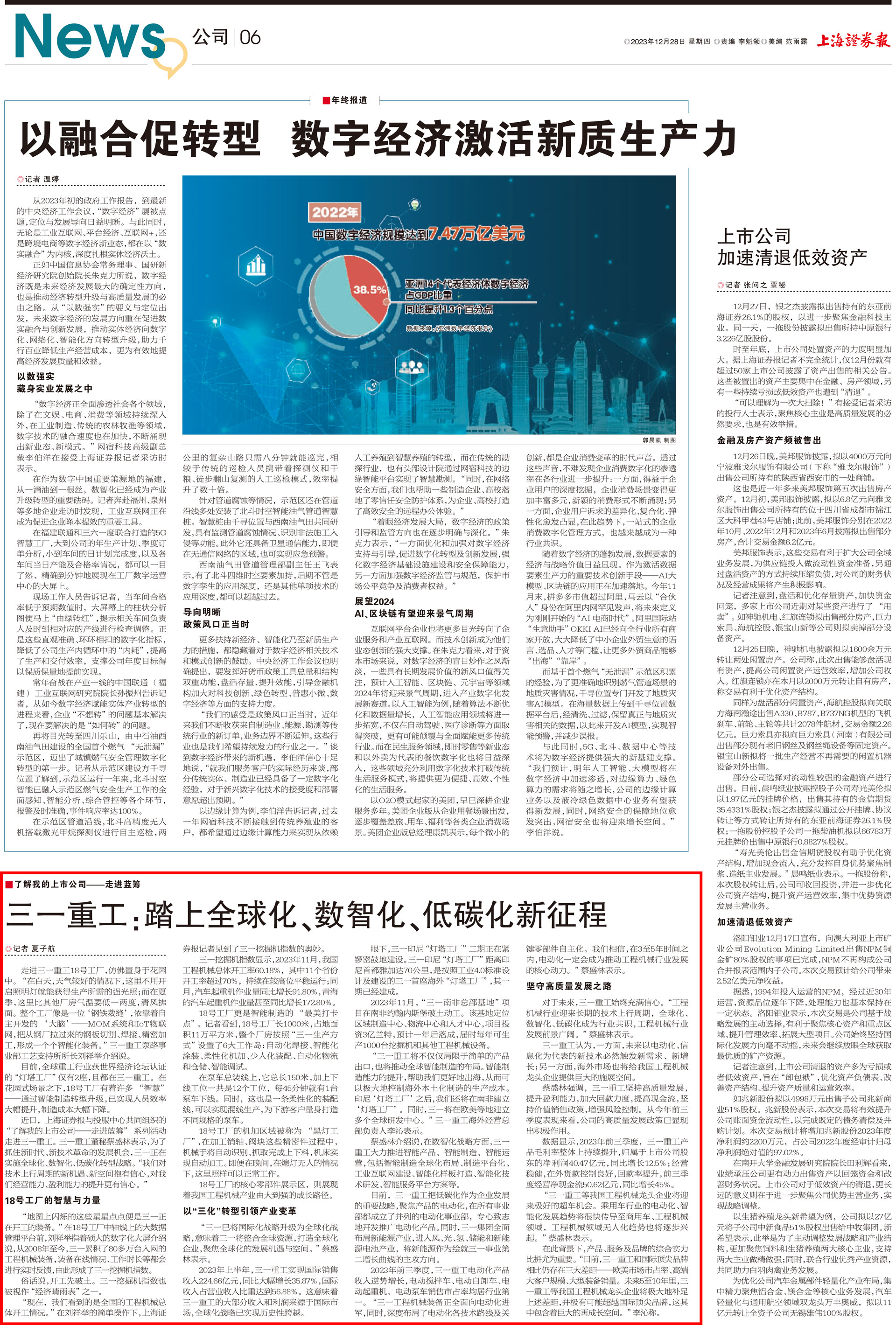 12月28日,《上海证券报》刊发《三一重工:踏上全球化、数智化、低碳化新征程》一文。作为“了解我的上市公司——走进蓝筹”系列报道之一,聚焦三一重工的数智化创新成果,并带领读者了解公司的发展战略与未来展望。