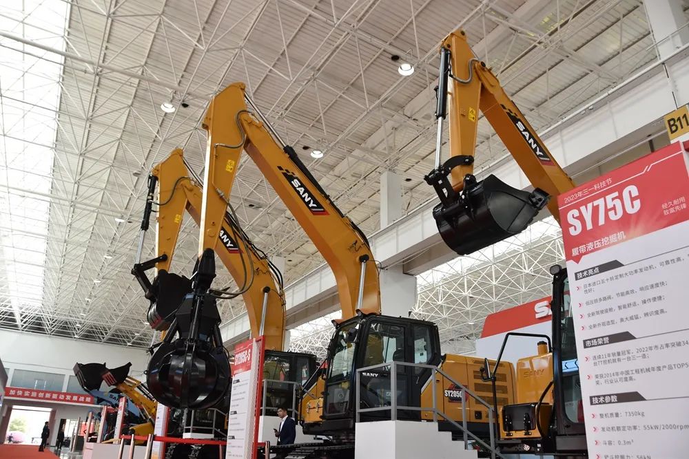 这是2023年3月31日在长沙“三一科技节”上拍摄的挖掘机。新华社记者 白田田 摄