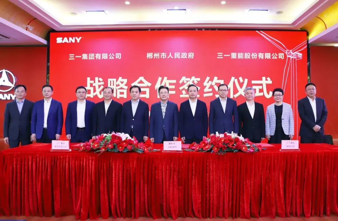 3月17日,郴州市人民政府与三一集团有限公司、三一重能股份有限公司正式签署200亿元战略投资合作协议。三一集团董事长梁稳根,郴州市委书记吴巨培出席签约仪式,并就双方合作进行深入座谈交流。