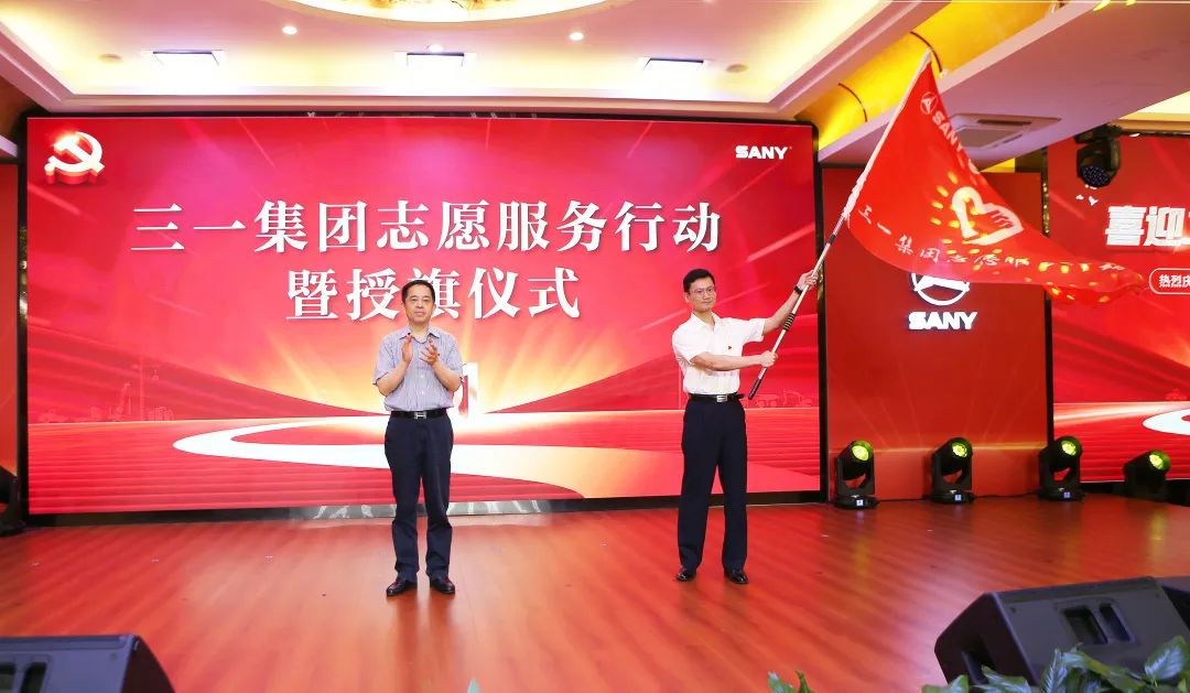 在这“喜迎二十大”重要时刻,三一集团、三一基金会还联合启动职工志愿者行动项目。向文波书记代表集团党委向三一集团团委授予“志愿者行动”旗帜,唐立桦接旗。