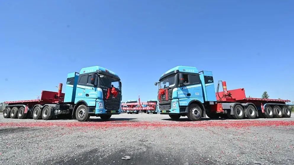 随着发车一声令下,100台”绿牌“三一电动重卡,全部奔赴货运前线。据介绍,本次交付产品具有动力强、高智能高、长续航、充电快等优势,其换挡平顺性、爬坡、能耗等均处于行业领先水平。