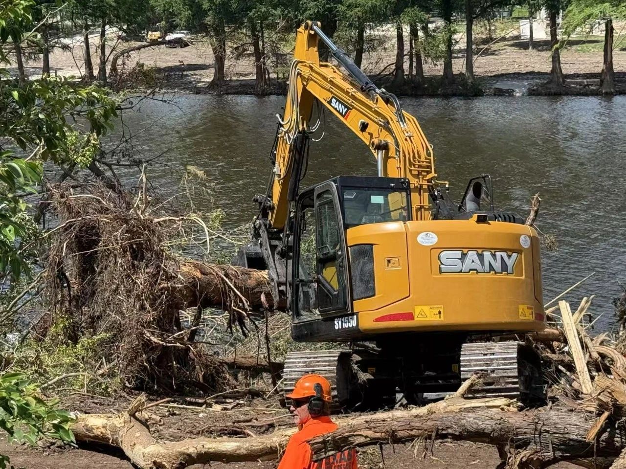 三一美国火速响应,联合得州经销商及租赁合作伙伴,迅速调派5台挖掘机奔赴受灾严重的圣安东尼奥区域,重点投入灾后清淤作业。