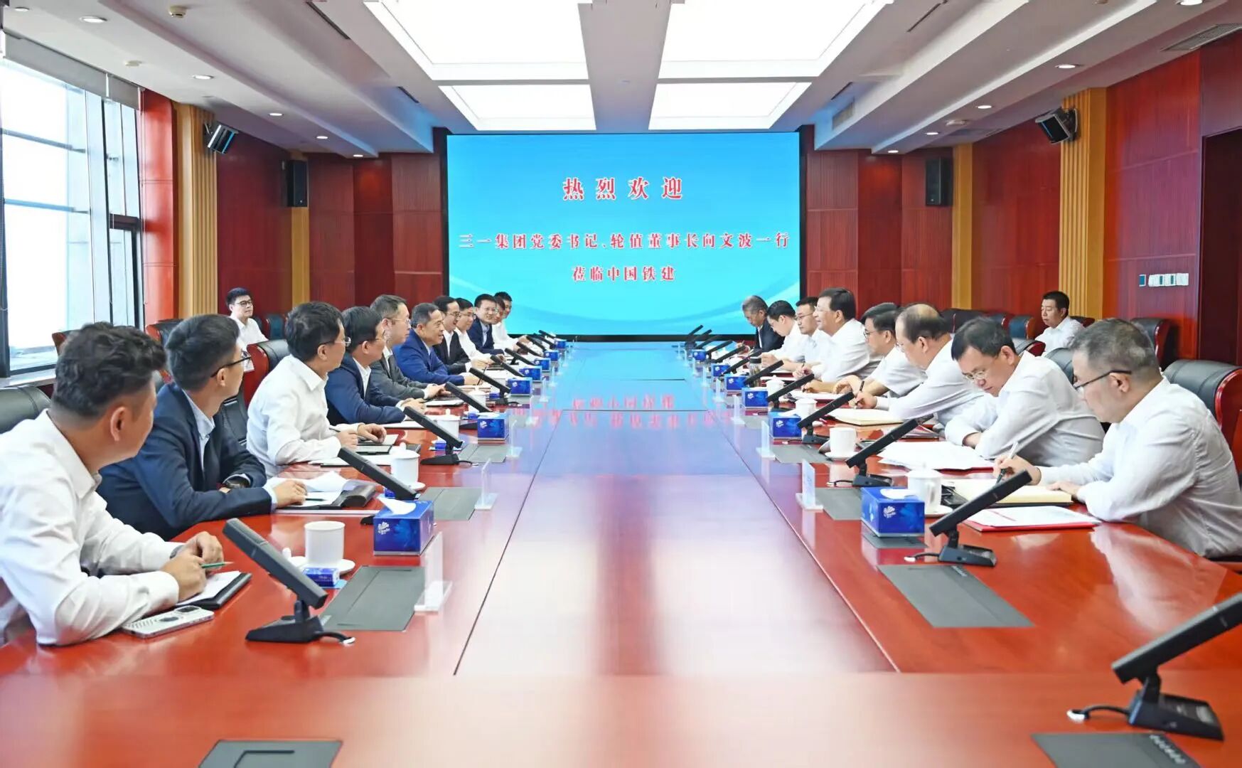 9月24日,三一集团党委书记、轮值董事长、三一重工董事长向文波一行到访中国铁建大厦,与中国铁建党委书记、董事长戴和根举行会谈,双方就深化合作、推动高质量发展进行了广泛深入的交流。