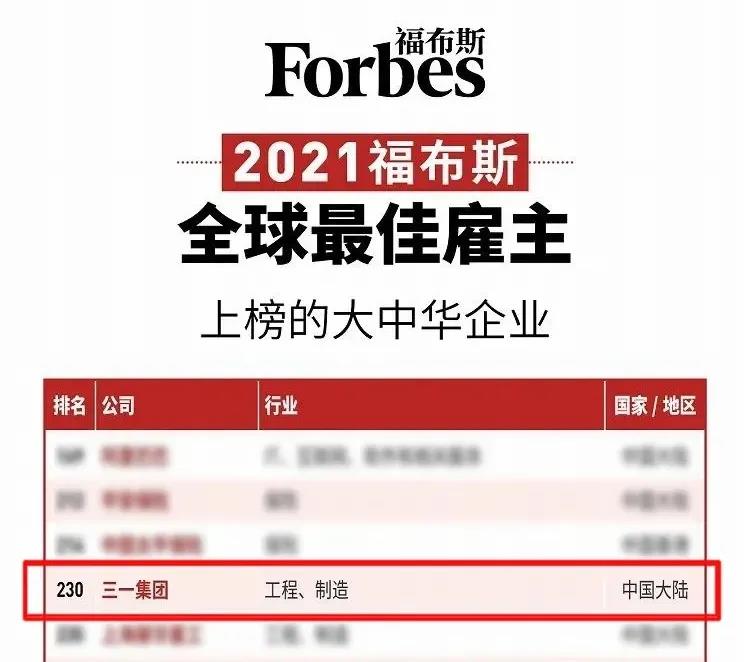 这一年,三一荣登福布斯全球最佳雇主榜单,位列全球第230位、大中华区第10,吸引一流人才,更造就一流人才。