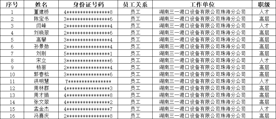 为增加员工归属感,我司开发位于珠海市金湾区平沙镇铭恩路31号【三一蓝海花园项目】用于引进行业人才,为保障房住不炒的居住用途及员工购房资格合规性,根据我司制定的《关于三一蓝海花园购房资格管理办法》,现对购房名单做如下公示: