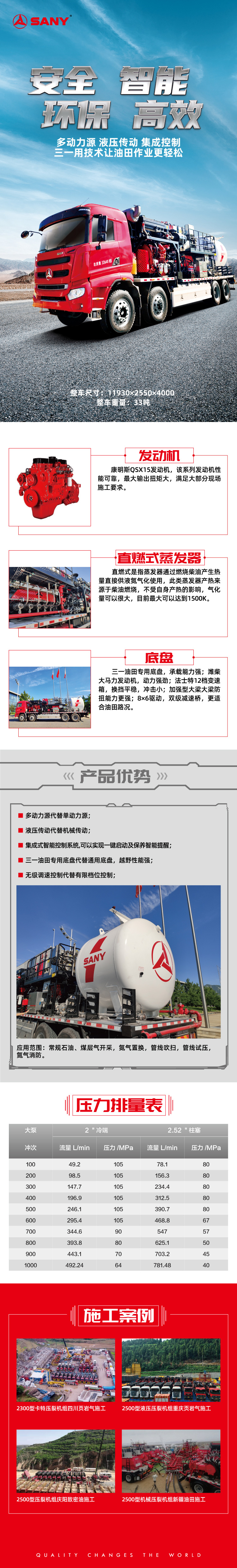 4.三一油田专用底盘代替通用底盘,越野性能强;