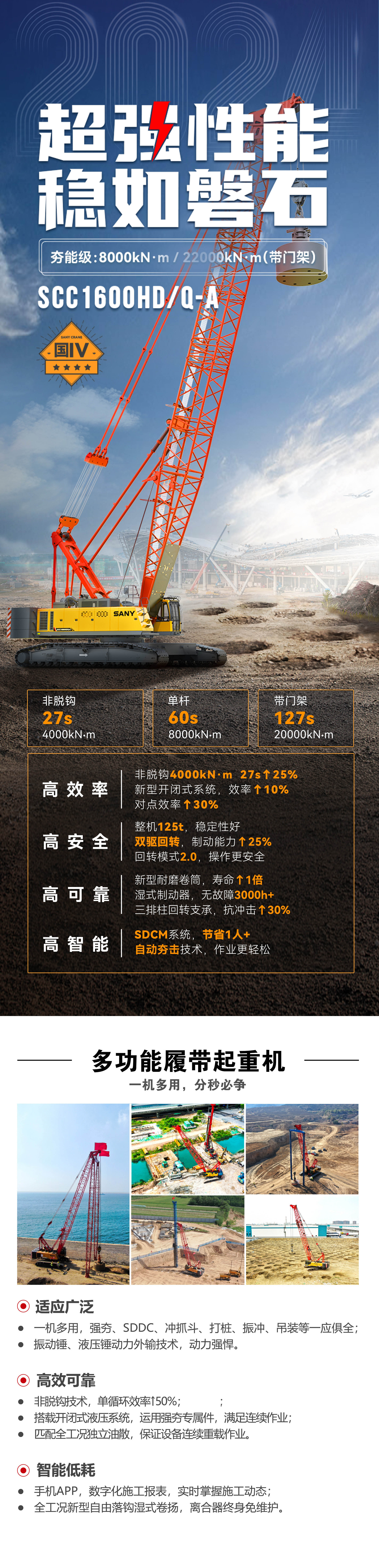 ■ 主机重量125t、8.3m大底盘、双回转减速机,施工更安全。